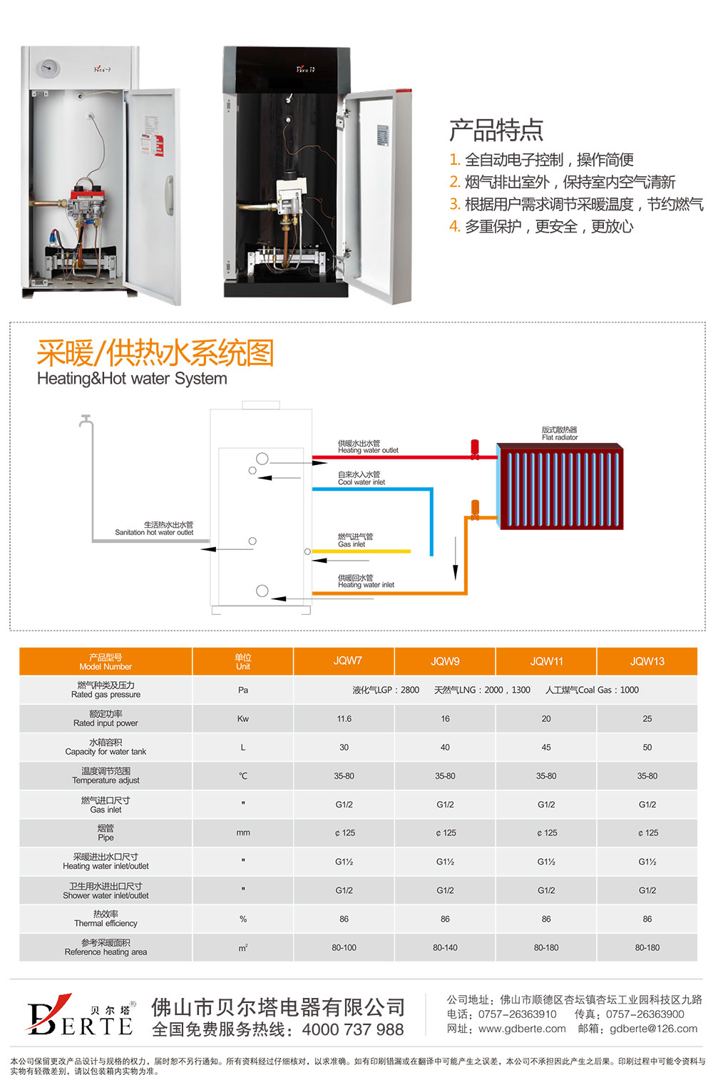 • 具有缺氧保護、熄火保護和煙道堵塞自動關閉燃氣閥體,充分保障人機安全;